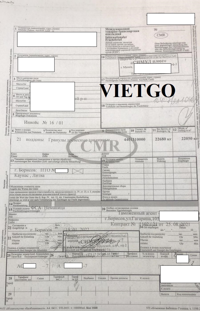 Dưới đây là hình ảnh hóa đơn thanh toán và hai bản vận đơn nhập khẩu viên nén gỗ từ Litva và Belarus vào ngày 23/02/2022 và 19/01/2022 mà công ty vị khách hàng đã thực hiện thành công: