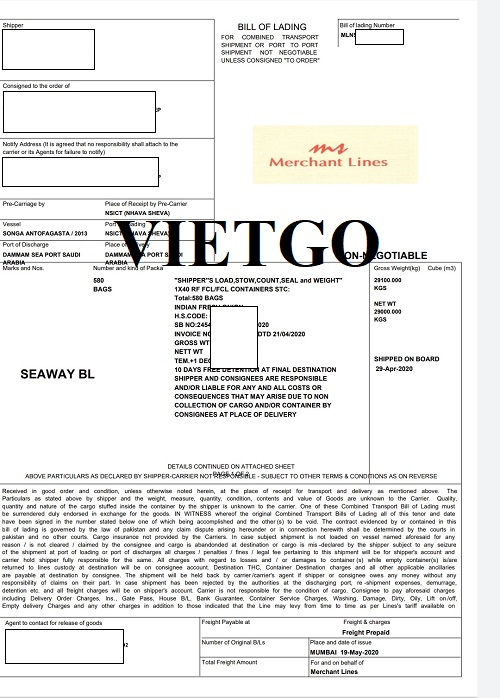 Dưới đây là một số bản vận đơn mà anh Alap đã cung cấp về đơn hàng nhập khẩu cam, hành tím và chanh từ các nước Pakistan, Ấn Độ và châu Phi vào Ả Rập Xê Út cùng với bản giấy phép thương mại của công ty anh.