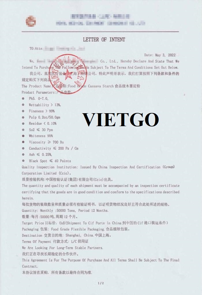 Thông tin chi tiết về sản phẩm tinh bột sắn vị khách hàng cần nhập khẩu sang thị trường Trung Quốc xin được gửi đến Quý nhà cung cấp như sau: