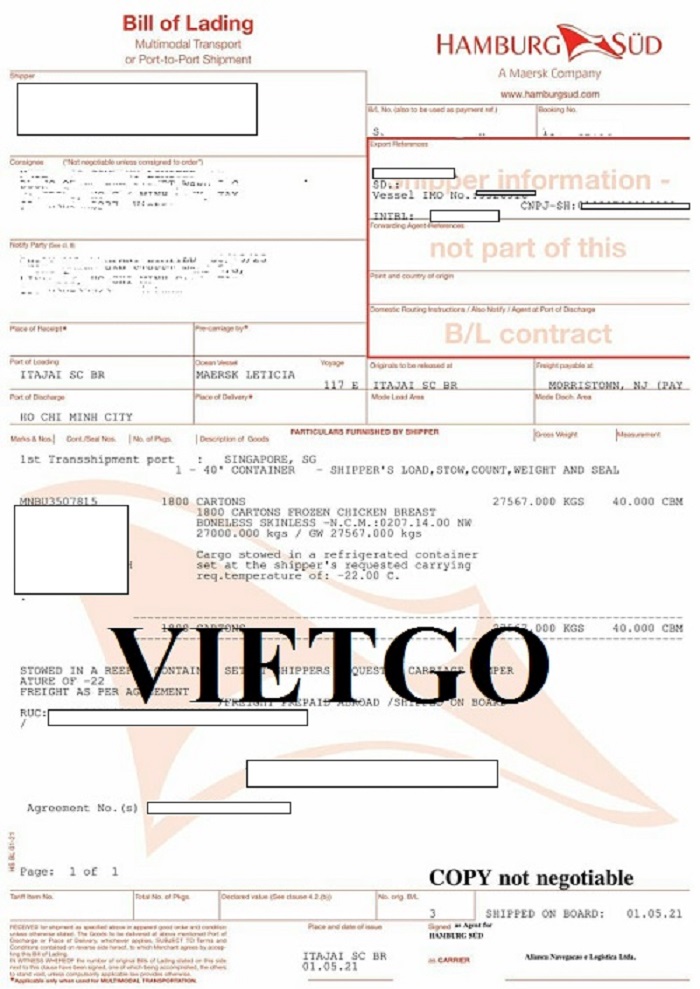 Dưới đây là thông tin chi tiết bản vận đơn nhập khẩu ức gà đông lạnh từ Brazil sang Việt Nam vào ngày 1/5/2021 mà công ty vị khách hàng đã thực hiện thành công: