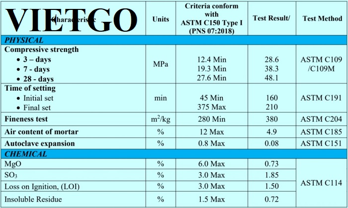 TÊN SẢN PHẨM: XI MĂNG PORTLAND