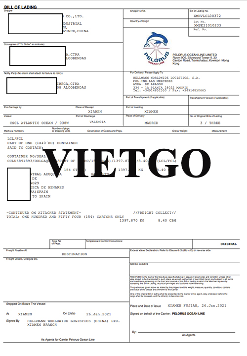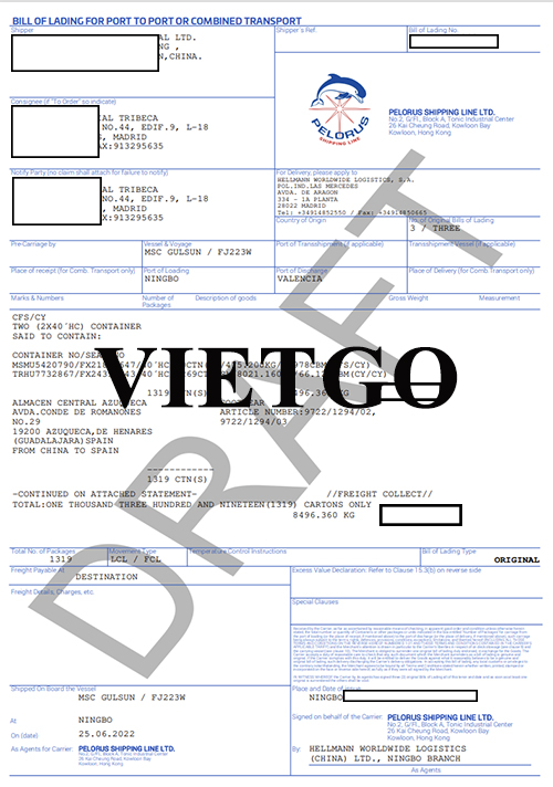 Hình ảnh vận đơn nhập khẩu thành công 02 container 40HC giày dép từ Trung Quốc do công ty của khách hàng thực hiện