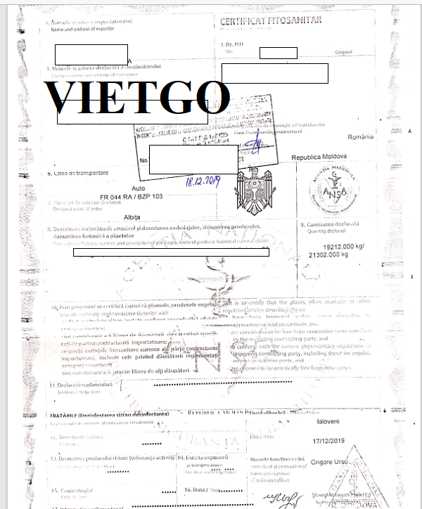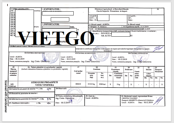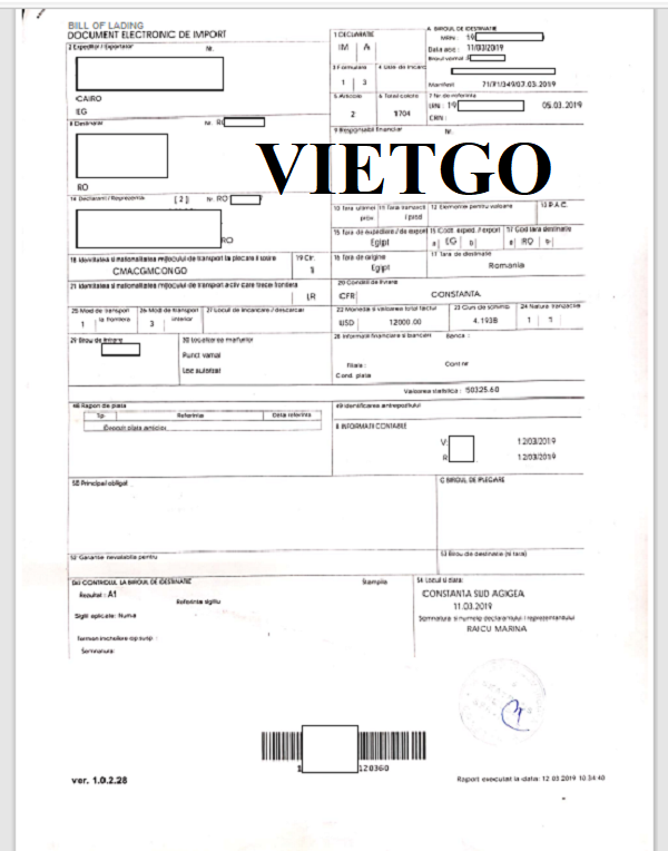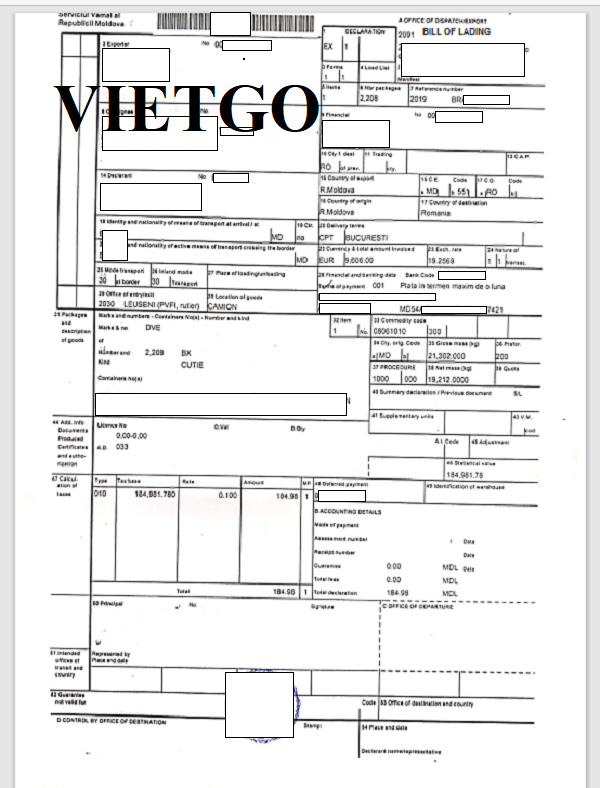 Hình ảnh bản vận đơn nhập khẩu thiết bị điện tử từ Moldova vào ngày 17/12/2019 của công ty vị khách hàng