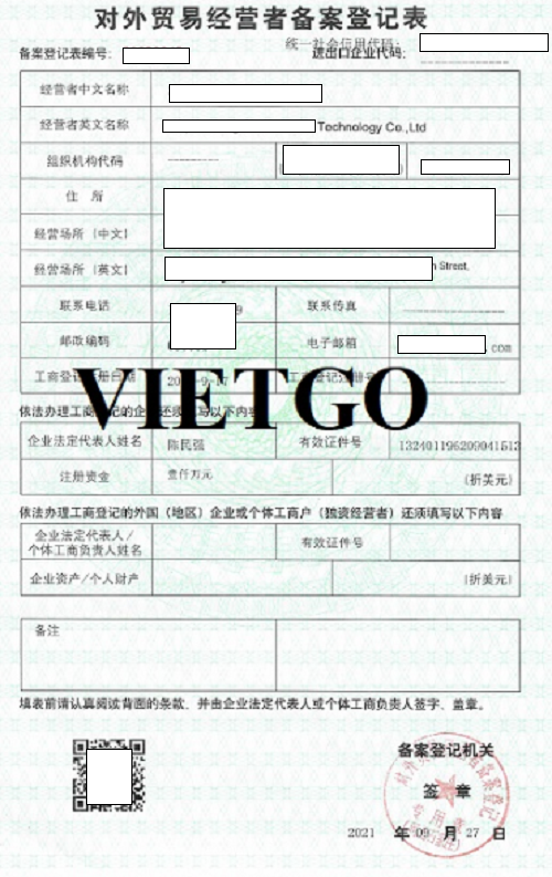 Hình ảnh giấy phép đăng kí xuất khẩu của công ty
