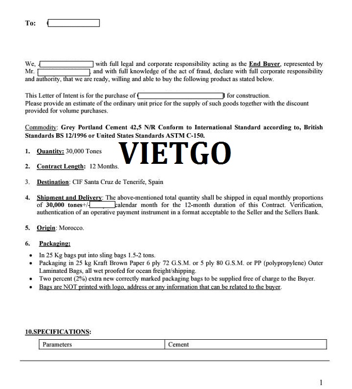 Những đơn hàng của công ty chúng tôi thường là số lượng lớn với tần suất nhập khẩu thường xuyên. Do đó với đơn hàng nhập khẩu xi măng lần này, chúng tôi có nhu cầu sử dụng liên tục không chỉ phục vụ cho các dự án xây dựng của ██████████ Trading mà còn phục vụ mục đích kinh doanh. Có thể bạn bất ngờ vì điều này nhưng hiện tại chúng tôi đang cung cấp xi măng cho 265 nhà phân phối lớn tại khắp các quốc gia trong khu vực châu Âu. Đó chính là lý do chúng tôi cần tìm kiếm những nhà cung cấp uy tín, có đủ khả năng đáp ứng các yêu cầu cả số lượng và chất lượng để đi đến mối quan hệ hợp tác lâu dài”.