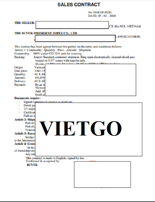 VIETGO xin gửi tới Quý nhà cung cấp đơn hàng sợi đến từ ông Srikuruwal, một chủ doanh nghiệp tại Thái Lan.