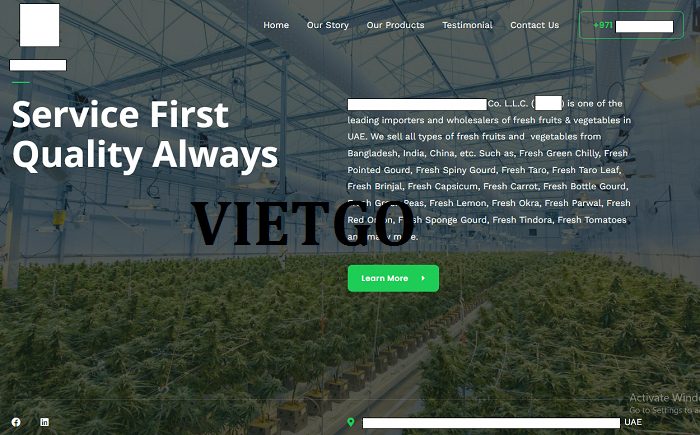 ████████████████████là công ty chị em của██████████ ở Dubai, UAE. ██████████ đã tạo dựng được uy tín của mình trong lĩnh vực xuất khẩu rau quả tươi từ Bangladesh với chất lượng và chủng loại sản phẩm đa dạng từ năm 2012. ██████████là công ty kinh doanh, xuất khẩu và nhập khẩu uy tín với nhiều loại sản phẩm bao gồm gạo, trái cây, gia vị, rau củ và ngũ cốc. Tất cả các nhà cung cấp của ██████████ trên khắp thế giới đều phải đáp ứng các yêu cầu chất lượng cao như nhau. ██████████ thường xuyên kiểm tra và cập nhật từ phía nhà cung cấp để đảm bảo rằng họ có các chứng chỉ chính xác và tuân thủ các Tiêu chuẩn Quốc tế. Ngoài ra, mỗi sản phẩm đầu vào của công ty đều được phân tích chất lượng. Điều đó đảm bảo sản phẩm đáp ứng yêu cầu chất lượng và an toàn vệ sinh. Nhờ vậy, tất cả các sản phẩm của ██████████ đều đáp ứng các yêu cầu nghiêm ngặt về chất lượng từ khâu sản xuất, đóng gói cho đến khi vận chuyển đến tận nhà khách hàng.