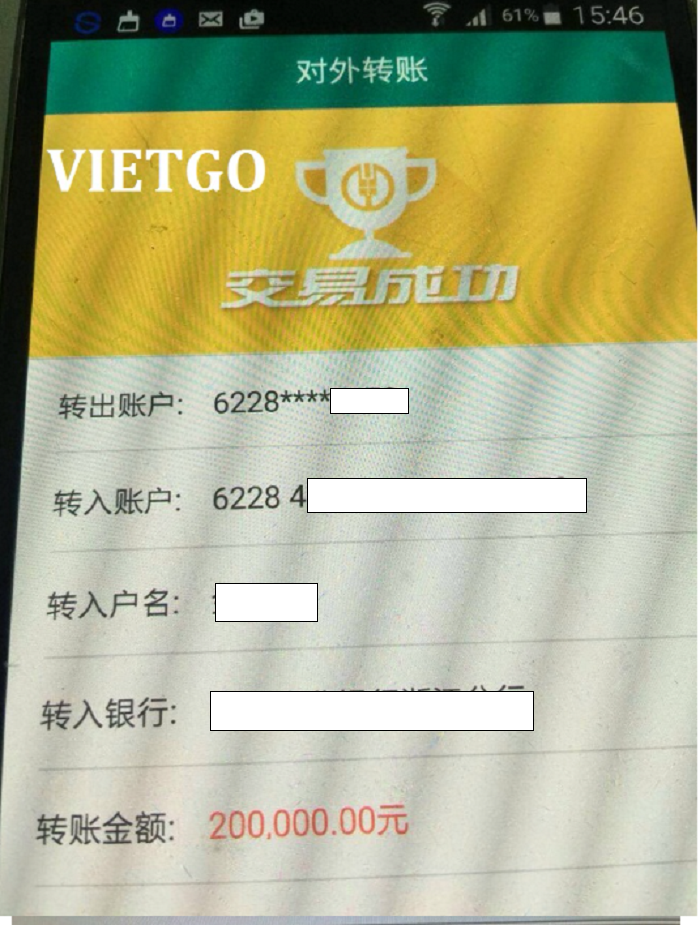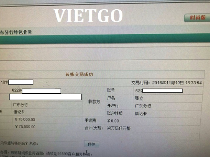 Hình ảnh một số giao dịch chuyển tiền của vị khách hàng với nhà cung cấp ở Trung Quốc