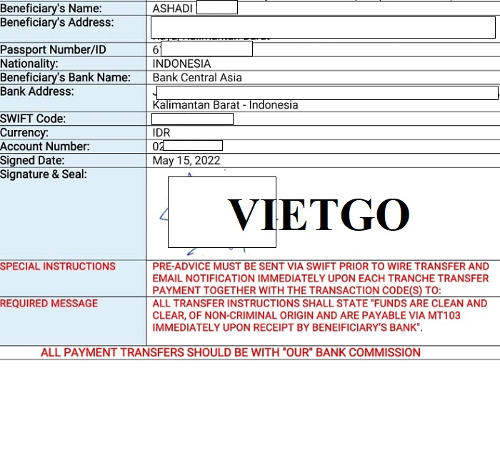 VIETGO xin gửi tới Quý nhà cung cấp thông tin đơn hàng, VIETGO chúc Quý vị có được một thương vụ thành công!
