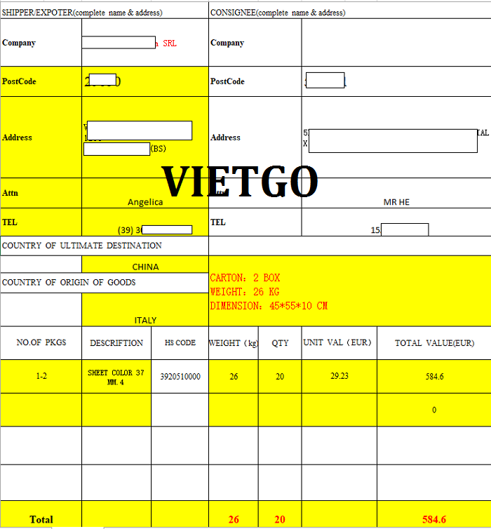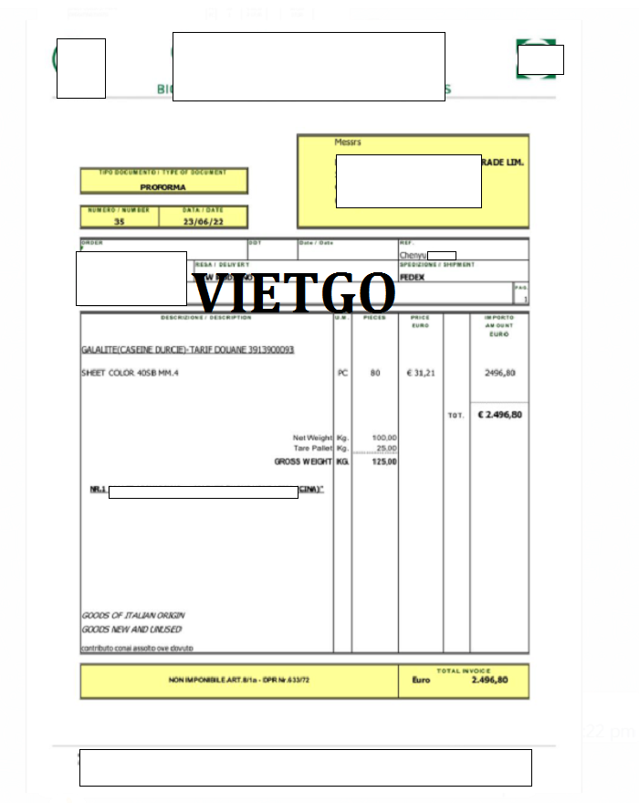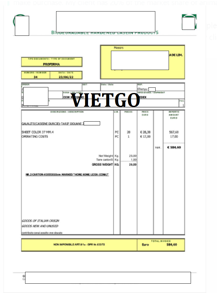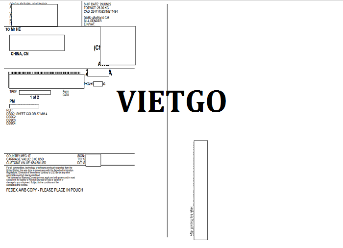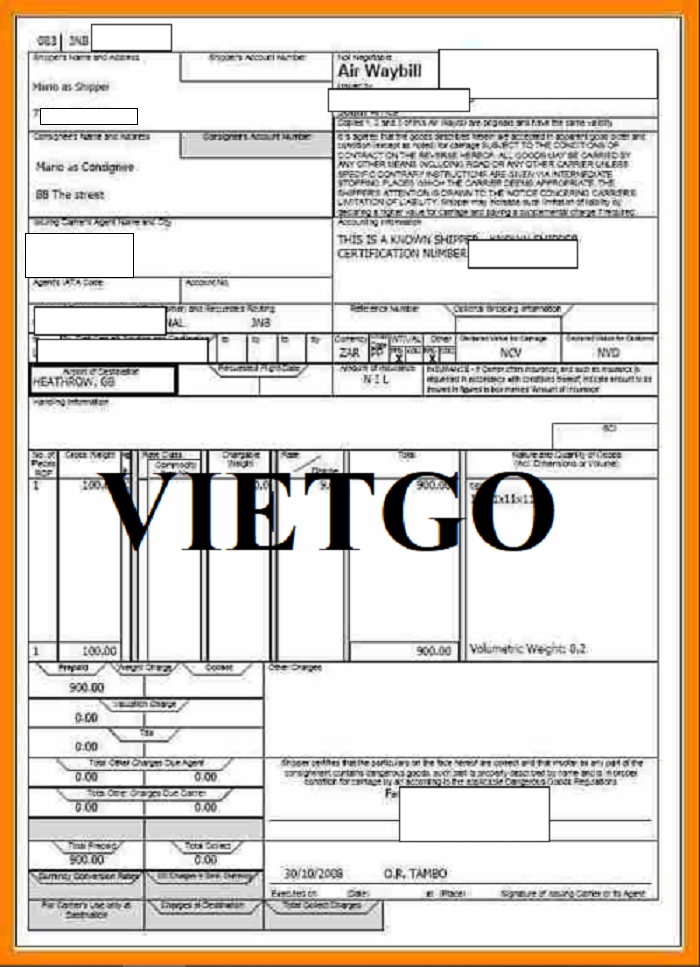 Dưới đây là bản vận đơn đường hàng không và một số chứng từ liên quan nhập khẩu vật liệu phân thủy sinh học từ Italia đến Trung Quốc của công ty do vị khách hàng đại diện:
