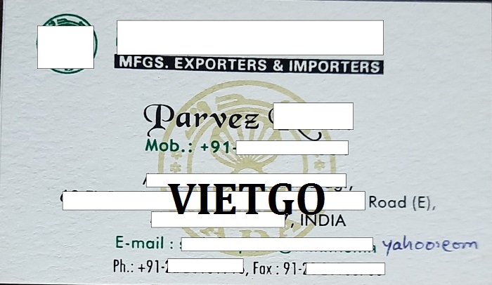 Vừa qua, VIETGO đã có cuộc trò chuyện với ông Parvez về nhu cầu nhập khẩu sản phẩm khăn bông, phục vụ cho công việc kinh doanh của công ty. Hiện ông Parvez là đại diện công ty ██████████, có địa chỉ văn phòng tại ██████████, ██████████, ██████████ ██████████ Road (E), ██████████ – ██████████, Ấn Độ. ██████████ là một công ty xuất khẩu hàng đầu của dòng sản phẩm làm đẹp, trang điểm và chăm sóc da. Bên cạnh đó, công ty cũng chuyên xuất khẩu các mặt hàng văn phòng phẩm, dệt may, đồ gia dụng, đồ nội thất nhựa, thực phẩm... Sản phẩm công ty kinh doanh gồm áo phông, áo ba lỗ, áo vest, chất khử mùi, bút, giấy, bìa, sách vở, bàn và đa dạng các loại sản phẩm khác.