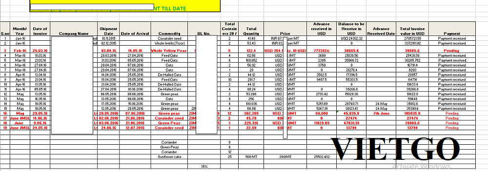 Dưới đây là hình ảnh bản vận đơn nhập khẩu đậu xanh từ Ukraine sang Ấn Độ mà công ty đã thực hiện thành công vào ngày 30/5/2016: