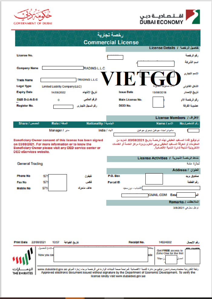 Công ty: ██████████ General Trading LLC