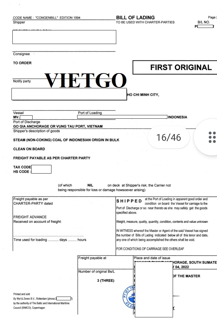 Vị khách hàng cho biết, công ty ông thường phân phối và xuất khẩu các loại than có xuất xứ từ Indonesia sang nhiều nước khác, trong đó có Việt Nam. VIETGO xin gửi tới Quý nhà cung cấp vận đơn xuất khẩu sản phẩm than của công ty vị khách hàng sang thị trường Việt Nam vào ngày 04 tháng 2 năm 2022: