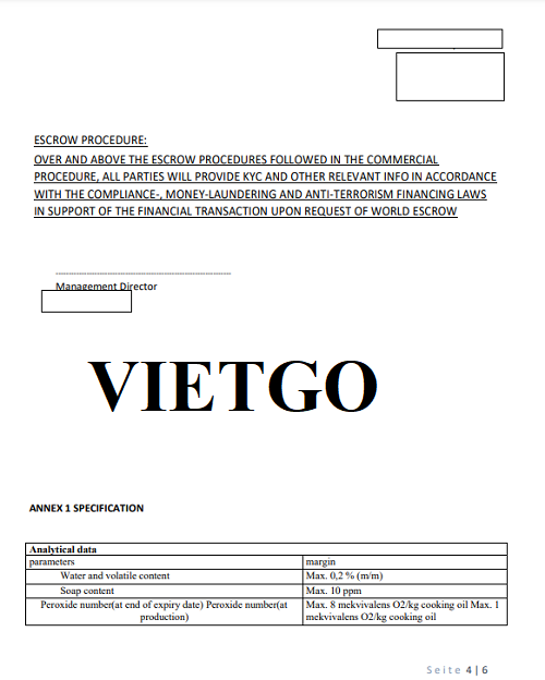 Ông Andreas – Giám đốc điều hành của công ty ██████████ Ltd. – liên hệ và mong muốn VIETGO tìm kiếm nhà cung cấp dầu hướng dương và dầu đậu nành cho các dự án của công ty ông Đức.