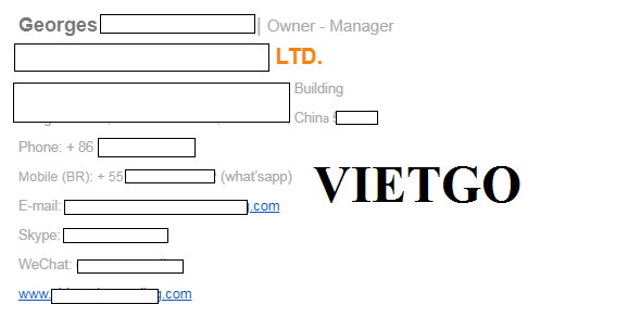 VIETGO xin gửi tới Quý nhà cung cấp thông tin về đơn hàng nhập khẩu ống thép sang thị trường Brazil đến từ vị khách hàng tiềm năng, ông Georges.