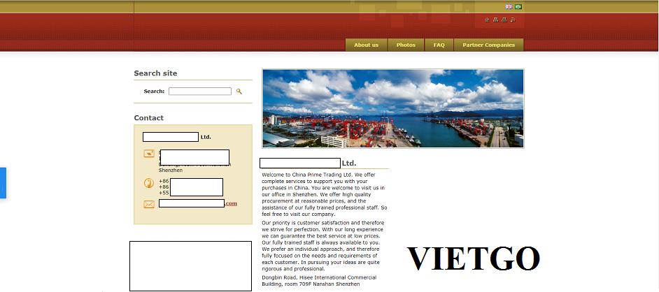 ██████████ Trading Ltd là một công ty theo định hướng hậu cần. Họ hỗ trợ các dự án nhập khẩu trực tiếp từ Trung Quốc của khách hàng với mục đích tiếp thị và phân phối. Đội ngũ nhân viên của công ty đến từ cả quốc gia Brazil và Trung Quốc có thể giúp khách hàng từ việc xác định sản phẩm hoặc nhà máy, cho đến khi thiết lập quan hệ đối tác, cũng như giám sát toàn bộ quy trình mua sắm.
