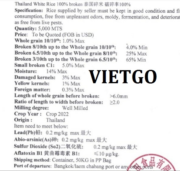 Ông Kim đang cần tìm nhà cung cấp cả năm cho đơn hàng nhập khẩu gạo trắng sang thị trường Trung Quốc. Thông tin chi tiết về đơn hàng xin được gửi đến Quý nhà cung cấp như sau: