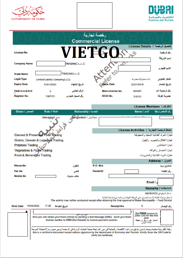 Hình ảnh giấy phép thương mại của công ty vị khách hàng