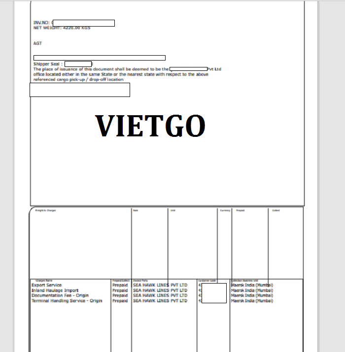 Dưới đây là bản vận đơn xuất khẩu của công ty ông Elangovan về các sản phẩm đồ gia dụng từ Ấn Độ sang Kenya.