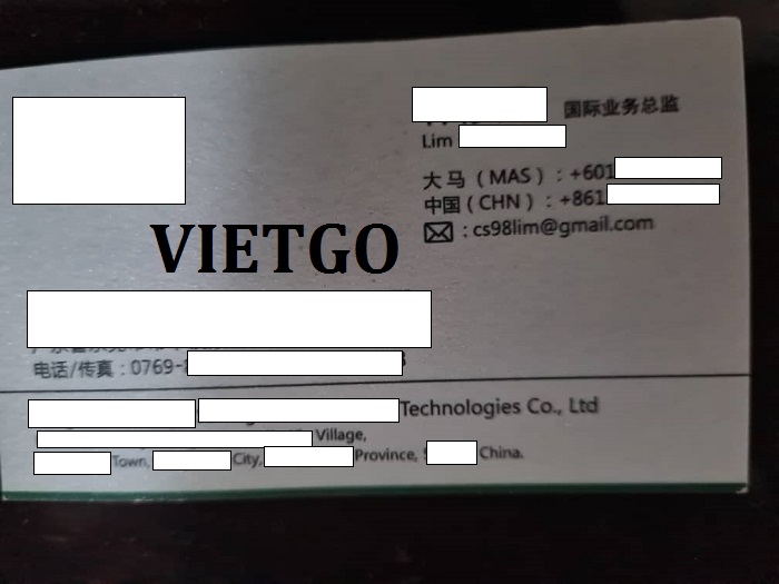Ông Lim hiện đang là Giám đốc Kinh doanh quốc tế đến từ công ty ██████████ ██████████ Technologies Co., Ltd có văn phòng đặt tại tỉnh Quảng Đông, Trung Quốc. Liên hệ trực tiếp với VIETGO, ông Lim có đề xuất đơn hàng nhập khẩu sản phẩm gạo vỡ với số lượng 30.000 tấn hàng tháng.