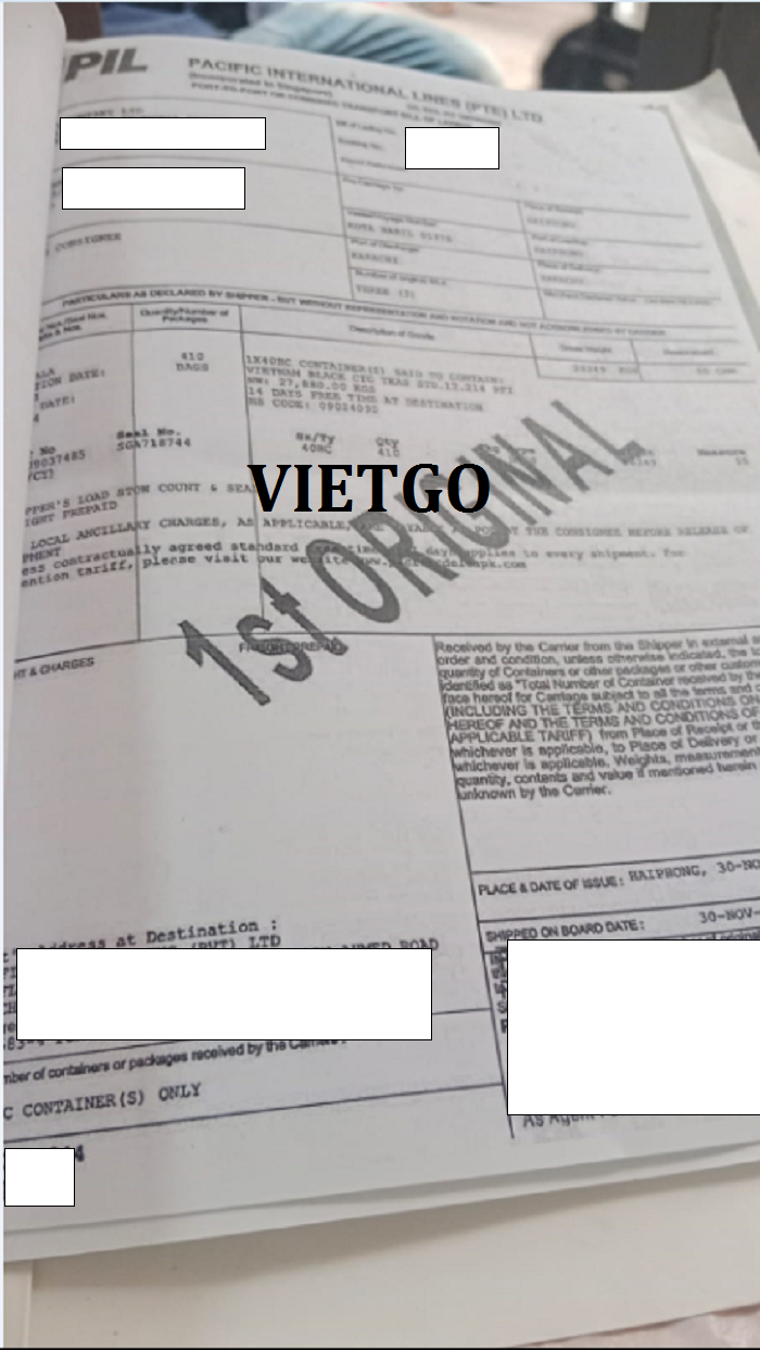 Hình ảnh bản vận đơn nhập khẩu sản phẩm chè từ Việt Nam đến Pakistan mà công ty vị khách hàng đã thực hiện vào ngày 30/12/2021