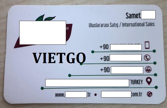 Ông Samet hiện đang đảm nhận bộ phận Bán hàng quốc tế tại công ty ██████████ có trụ sở chính đặt tại thủ đô Ankara, Thổ Nhĩ Kỳ. Liên hệ trực tiếp với VIETGO, ông Samet có đề xuất một đơn hàng nhập khẩu sản phẩm hạt điều nhân trắng với số lượng 1 container 40ft cho đơn hàng đầu tiên. Nếu giá cả phù hợp và chất lượng thỏa mãn, vị khách hàng dự kiến sẽ tiếp tục với mỗi chuyến hàng hàng tháng. Đơn hàng được thực hiện nhằm mục đích phục vụ hoạt động sản xuất kinh doanh của khách hàng công ty ông.