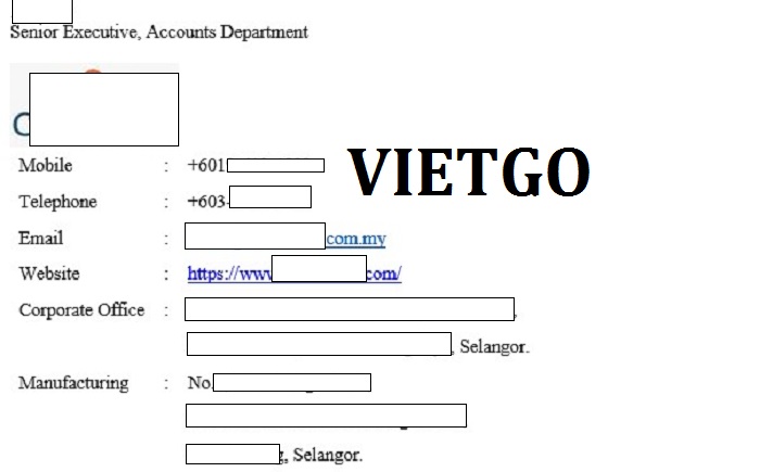 Địa chỉ trụ sở: ██████████ ██████████ ██████████ ██████████ ██████████, ██████████, Malaysia