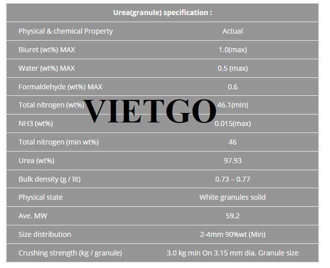 VIETGO xin gửi tới Quý nhà cung cấp thông tin về đơn hàng phân bón ure đến từ vị khách hàng tiềm năng, ông Qamari.