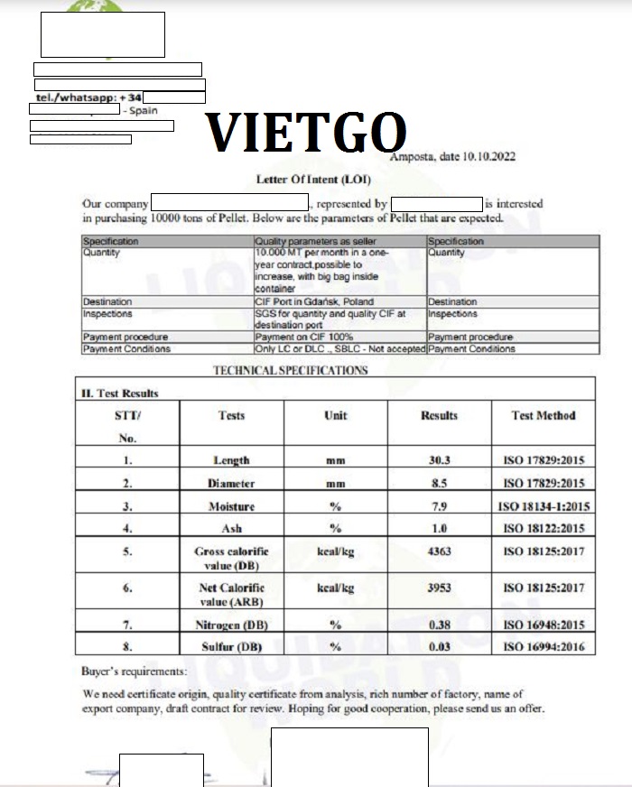 VIETGO xin gửi tới Quý nhà cung cấp thông tin về đơn hàng viên nén mùn cưa đến từ vị khách hàng tiềm năng, ông Olaf.