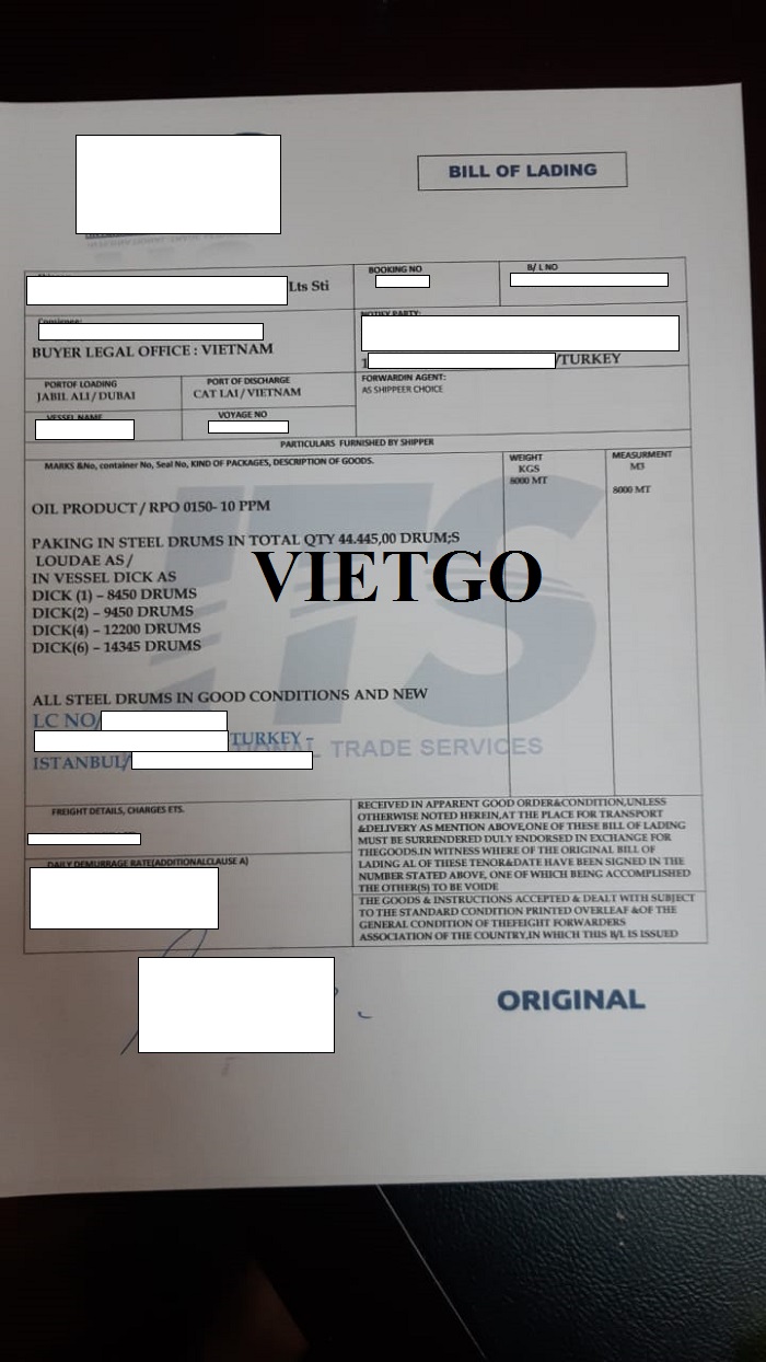 Dưới đây là bản vận đơn xuất khẩu sản phẩm do công ty vị khách hàng từng thực hiện thành công:
