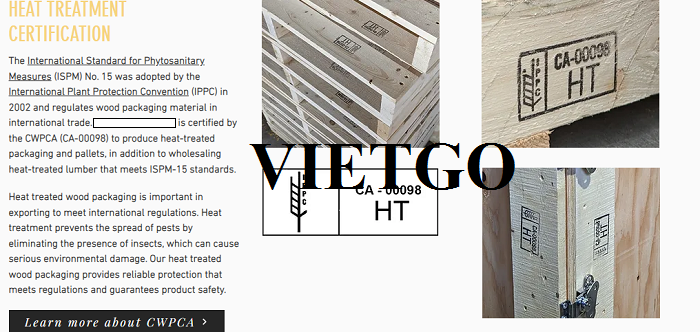 Gỗ được xử lý nhiệt (Heat treatment) với nhiệt độ là 56⁰C trong 30 phút theo tiêu chuẩn ISPM 15