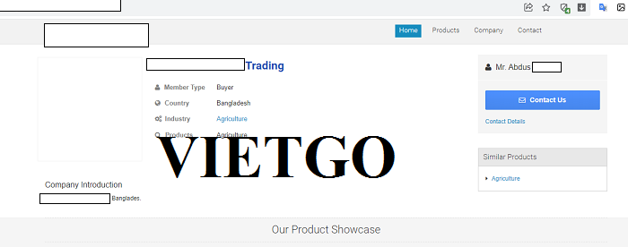 Ông Abdus – Giám đốc phát triển kinh doanh của công ty ██████████ Tradding có trụ sở tại Bangladesh – hiện đang có nhu cầu tìm kiếm nhà cung cấp cho sản phẩm gừng tươi.