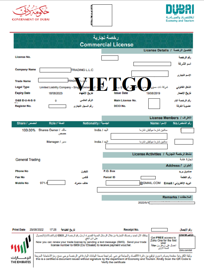 Hình ảnh giấy phép đăng ký kinh doanh của công ty vị khách hàng