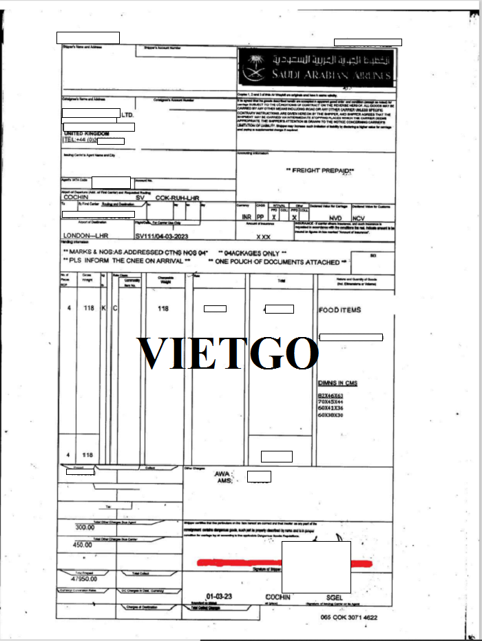 Dưới đây là bản vận đơn hàng không nhập khẩu từ Ấn Độ vào tháng 03 năm 2023 do công ty vị khách hàng từng thực hiện thành công: