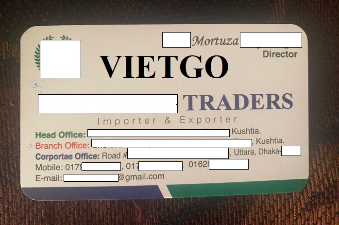 Ông Mortuza – vị khách hàng của VIETGO lần này là Giám đốc của công ty thương mại ██████████ đang hoạt động trong lĩnh vực xuất nhập khẩu, có trụ sở chính được đặt tại Bangladesh. Đây là công ty thương mại, là cầu nối trung gian giữa nhà sản xuất và người tiêu dùng, phân phối hàng hóa giữa các nơi với nhau, mở rộng thị trường, đặc biệt là thị trường nước ngoài thông qua hoạt động xuất khẩu, đưa hàng hóa trong nước ra quốc tế và đưa hàng hóa quốc tế vào thị trường trong nước. Hiện tại, công ty ông cũng đang nhập khẩu trực tiếp và đang kinh doanh về các sản phẩm chính như dầu ăn, đậu nành, ngô, vỏ lúa mì, đường, thức ăn chăn nuôi,...