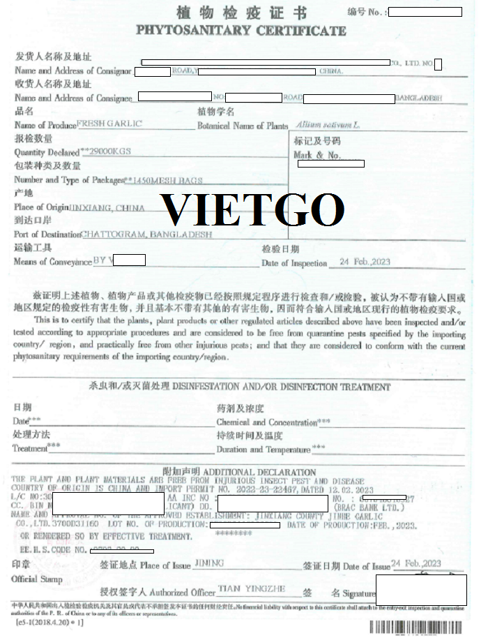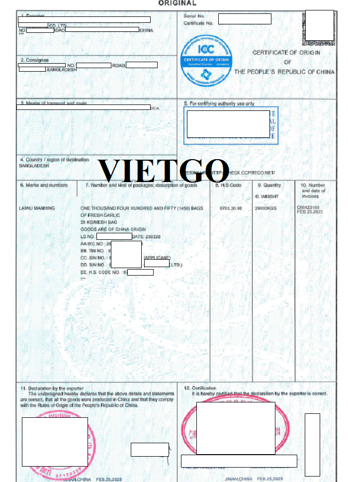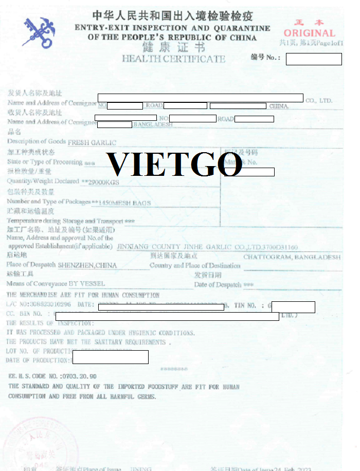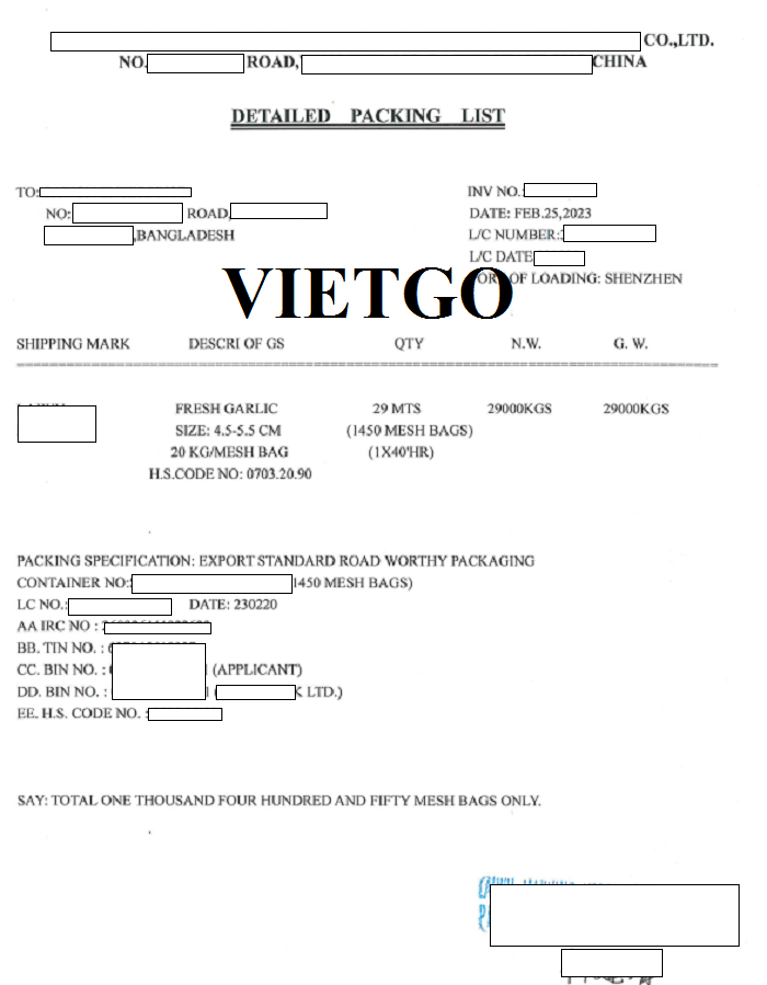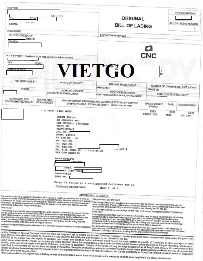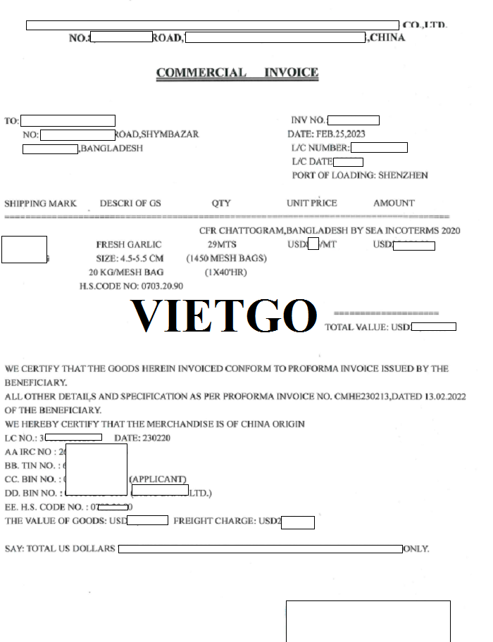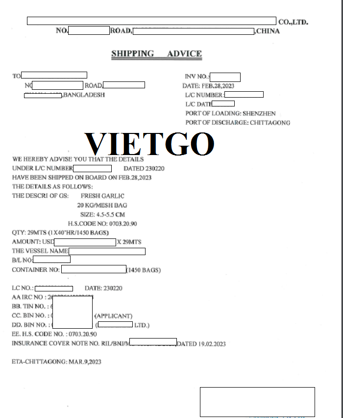 Dưới đây là hình ảnh bản vận đơn cũng như bộ chứng từ của đơn hàng nhập khẩu tỏi trắng từ Trung Quốc vào ngày 28/02/2023 mà công ty vị khách hàng đã thực hiện thành công: