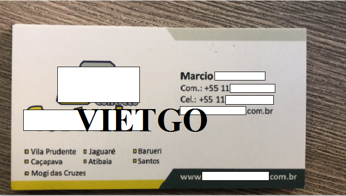 Được biết, ông Marcio hiện cũng đang quản lý một công ty chuyên cung cấp các loại thiết bị công nghệ cao, phương tiện đặc biệt để vận chuyển và thi công bê tông có tên ██████████. Để minh chứng cho kinh nghiệm trong việc nhập khẩu cũng như sự nghiêm túc của vị khách hàng trong việc tìm kiếm nhà cung cấp cho đơn hàng lần này, VIETGO xin gửi tới Quý nhà cung cấp hình ảnh bộ chứng từ của công ty ông.