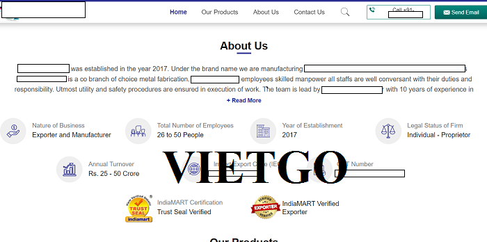 ██████████ được thành lập vào năm 2017, công ty đang sản xuất máy bóc vỏ hạt điều và thang máy chất lượng xuất khẩu. ██████████ là một chi nhánh hợp tác chế tạo kim loại. Nhân viên của ngành công nghiệp ████████████████████có tay nghề cao, tất cả nhân viên đều thông thạo với công việc và trách nhiệm của họ. Các quy trình tiện ích và an toàn được đảm bảo tối đa trong quá trình thi công. Nhóm được dẫn dắt bởi kỹ sư cơ khí với 10 năm kinh nghiệm trong ngành. ██████████ được trang bị máy móc mới nhất, vật liệu và công cụ chất lượng cao được sử dụng để duy trì chất lượng công việc cao.
