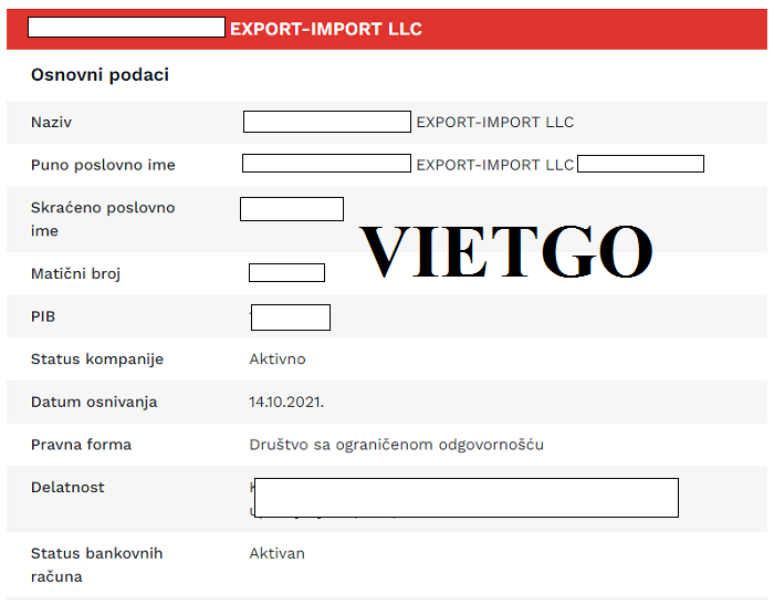 Vừa qua, anh ██████████ Hoàn – vị khách hàng người Việt Nam, hiện nay đang sinh sống và làm việc tại Serbia đã liên hệ với VIETGO bày tỏ mong muốn nhập khẩu sản phẩm đồ gỗ nội thất với số lượng lớn sang thị trường Slovenia và Montenegro. Vị khách hàng đang giữ vai trò là người đại diện pháp lý của công ty ██████████ Export - Import LLC ██████████ tại Serbia.
