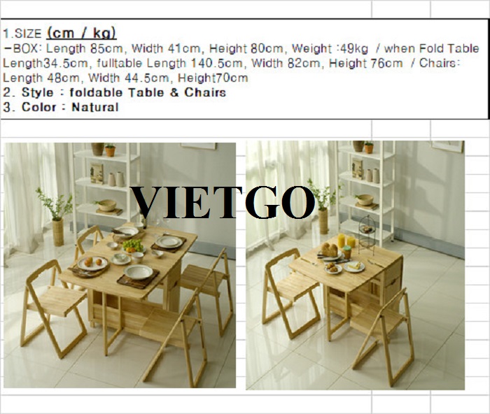 VIETGO xin gửi tới Quý nhà cung cấp đơn hàng xuất khẩu bàn ghế gỗ gấp của ông Kim, chủ tịch của một công ty thương mại có vốn sở hữu Hàn Quốc tại Việt Nam, và là vị khách hàng thân thiết của VIETGO.