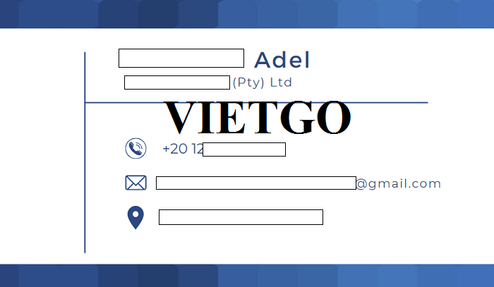 Ông Adel là một vị khách hàng tiềm năng đại diện cho công ty ██████████ (Pty) Ltd với một văn phòng được đặt tại Edenvale, Nam Phi. Liên hệ trực tiếp cùng VIETGO, ông Adel có đề xuất một đơn hàng nhập khẩu sản phẩm dầu hướng dương tinh luyện với số lượng là 5.000 tấn và 10 container 40ft hàng tháng tới thị trường Nam Phi. Đơn hàng lần này được thực hiện nhằm mục đích phục vụ hoạt động sản xuất kinh doanh của khách hàng của ông.