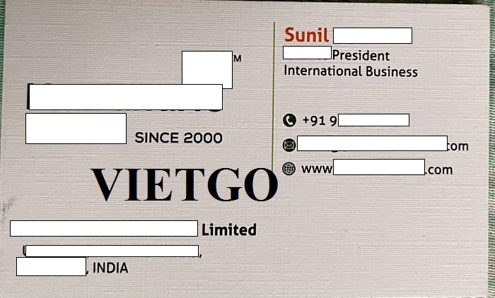 Với những chia sẻ trên, ông Sunil rất mong muốn nhận được phản hồi về mức giá cạnh tranh từ phía nhà cung cấp của VIETGO. Vậy, Quý nhà cung cấp nào quan tâm đến đơn hàng nhập khẩu gừng của vị khách hàng, vui lòng liên hệ và báo giá với ông theo địa chỉ thông tin liên lạc dưới đây: