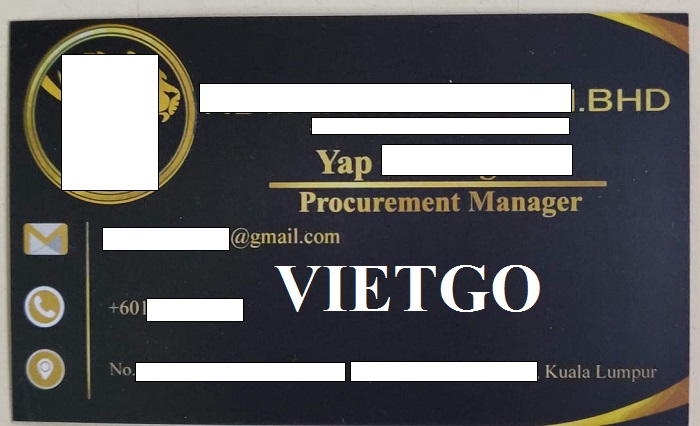 Rất mong Quý nhà cung cấp quan tâm tới đơn hàng có thể sớm liên lạc và báo giá với ông trong thời gian sớm nhất. Quý nhà cung cấp vui lòng liên hệ với ông Yap qua các thông tin dưới đây để nhanh chóng báo giá và xuất khẩu thành công đơn hàng hấp dẫn này.