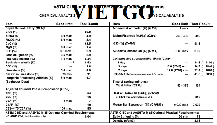 (Nhà cung cấp vui lòng báo giá cho các loại xi măng có sẵn của mình)