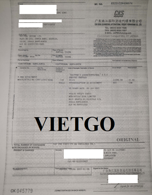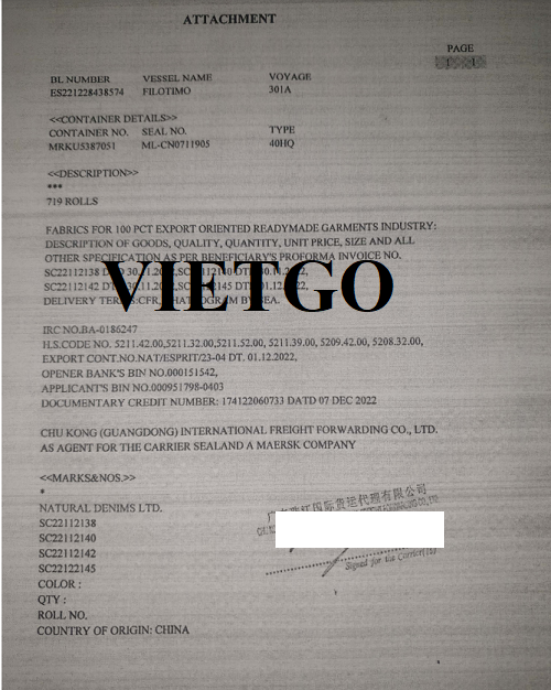 Hình ảnh vận đơn nhập khẩu sản phẩm vải từ thị trường Trung Quốc ngày 6/1/2023 do vị khách hàng cung cấp