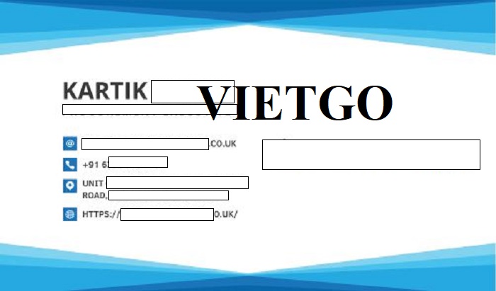 Vị khách hàng mong sớm nhận được báo giá cũng như trao đổi thêm với các nhà cung cấp của VIETGO. Bởi vậy, Quý nhà cung cấp quan tâm tới đơn hàng và có mong muốn hợp tác với ông Kartik xin vui lòng liên lạc với vị khách hàng qua thông tin dưới đây: