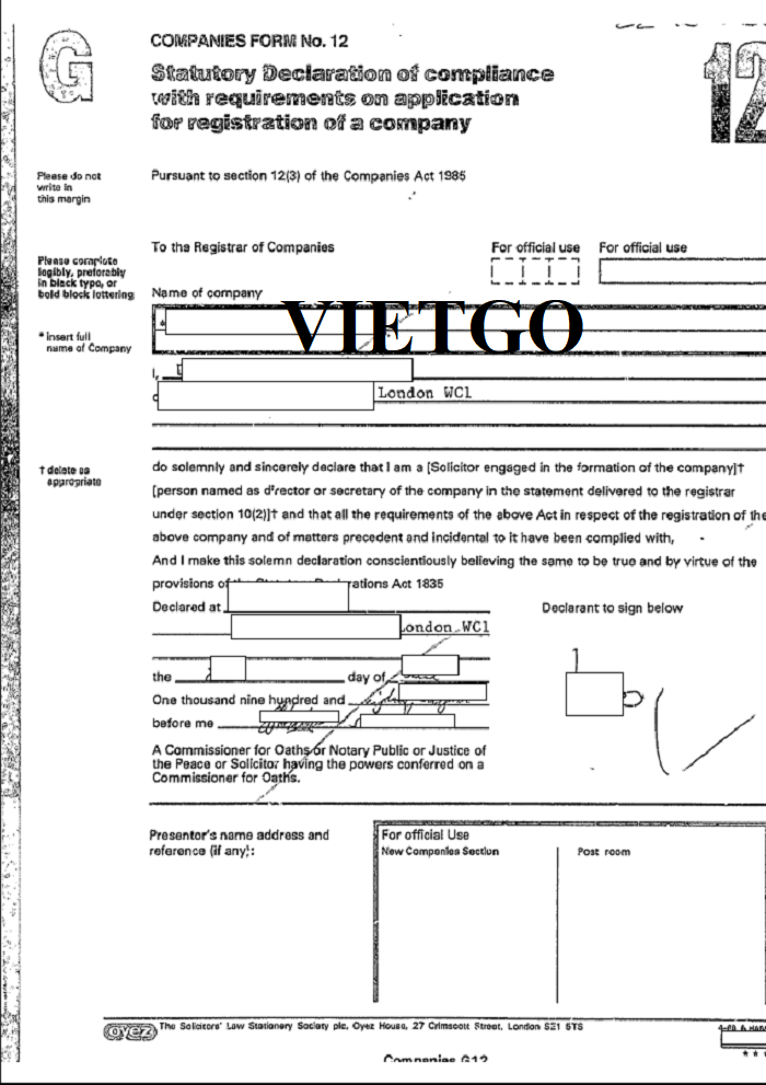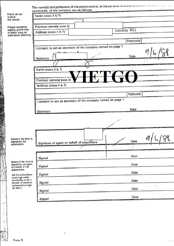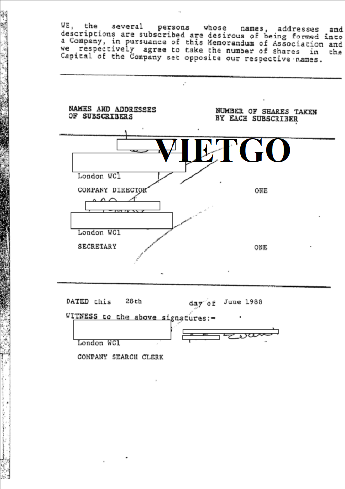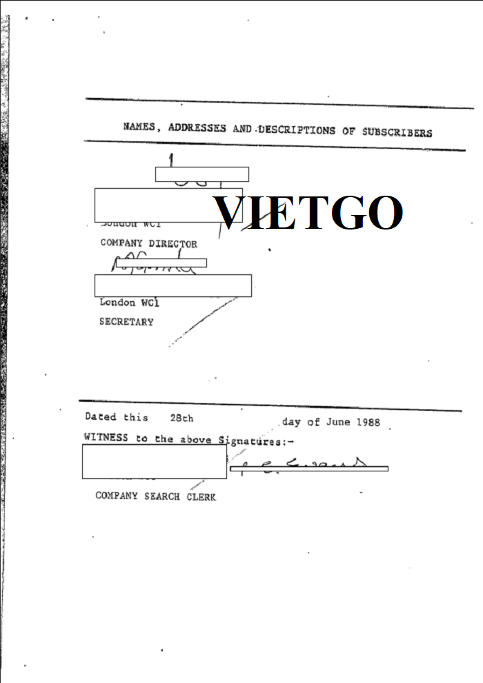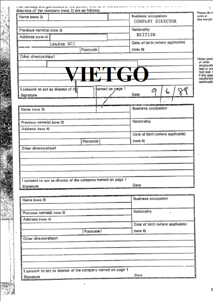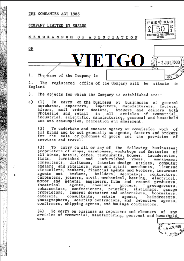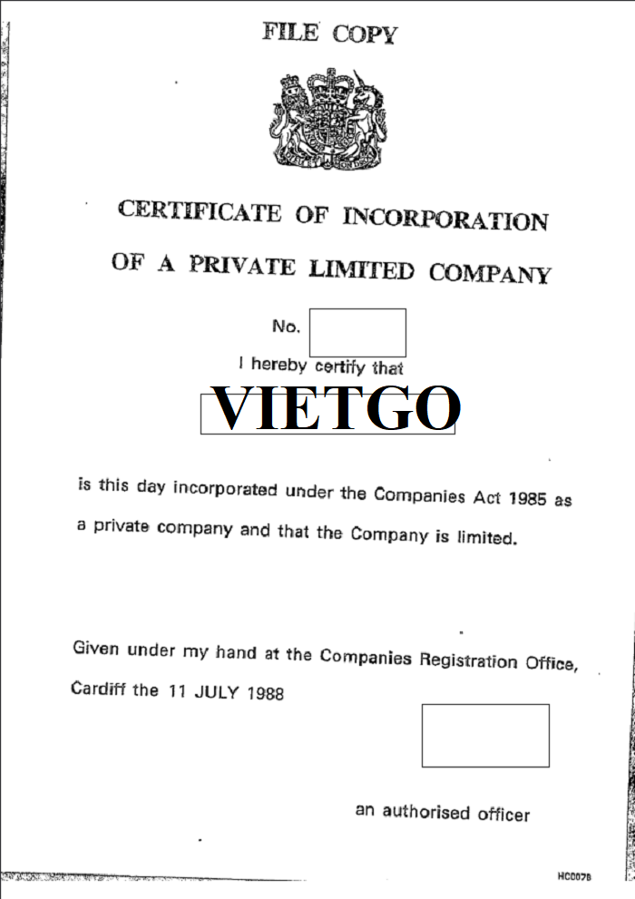 Hình ảnh đăng ký kinh doanh vào năm 1988 của công ty vị khách hàng tại Cục Quản lý Công ty Cardiff, Vương quốc Anh