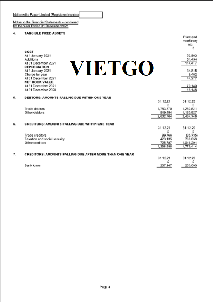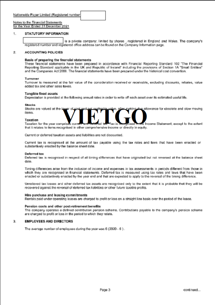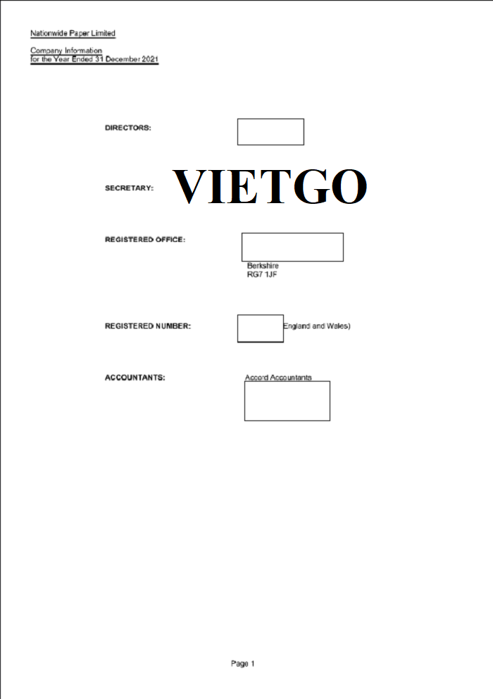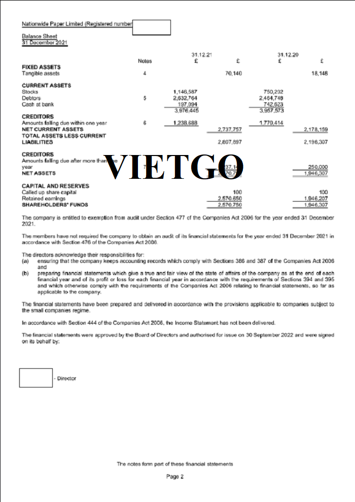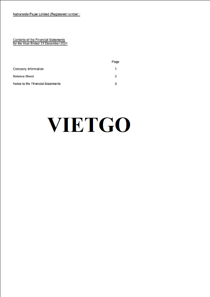 Hình ảnh báo cáo tài chính của công ty vị khách hàng vào năm 2021