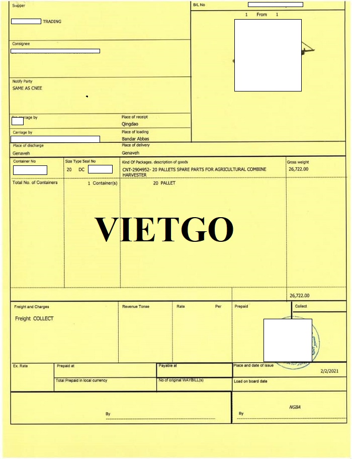 Dưới đây là hình ảnh vận đơn nhập khẩu sản phẩm phụ tùng ô tô, máy móc của công ty ông Ali vào ngày 02/02/2021 cùng một số giấy tờ khác mà ông cung cấp: